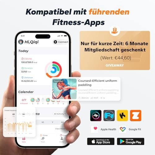 Das Gerät kann über Bluetooth mit der MERACH Fitness App verbunden werden. Dadurch lassen sich Trainingsdaten wie Zeit, Geschwindigkeit, Distanz, Widerstandsstufe und Kalorienverbrauch in Echtzeit verfolgen. Zusätzlich ist eine Synchronisierung mit Fitness-Plattformen wie Google Fit und Apple Health möglich, sodass Sie Ihren Trainingsfortschritt jederzeit im Blick behalten können.