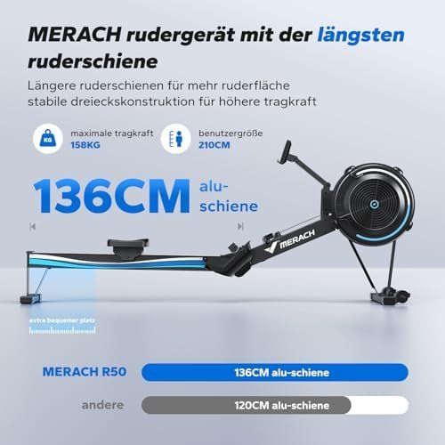 Mit seinem realistischen Luftwiderstand, der stabilen Konstruktion und der smarten App-Unterstützung ist das MERACH Rudergerät eine ausgezeichnete Wahl für alle, die ein effektives Fitnessgerät für Ganzkörpertraining zu Hause suchen.